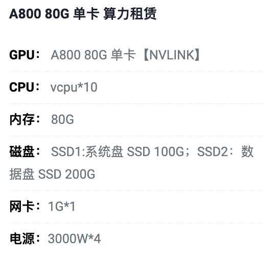 丰台A800-80G单卡租用价格