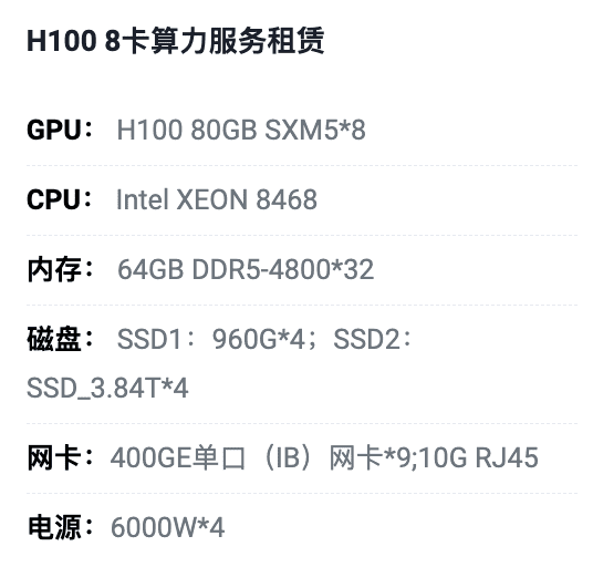 丰台H100八卡算力租用价格